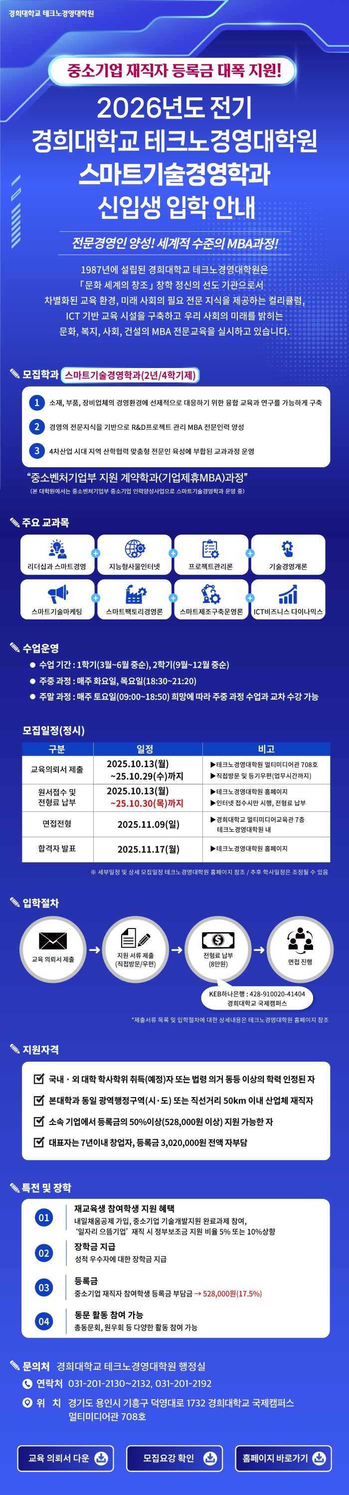 2026학년도 전기 경희대학교 테크노경영대학원 석사과정 입학 안내(스마트기술경영학과)